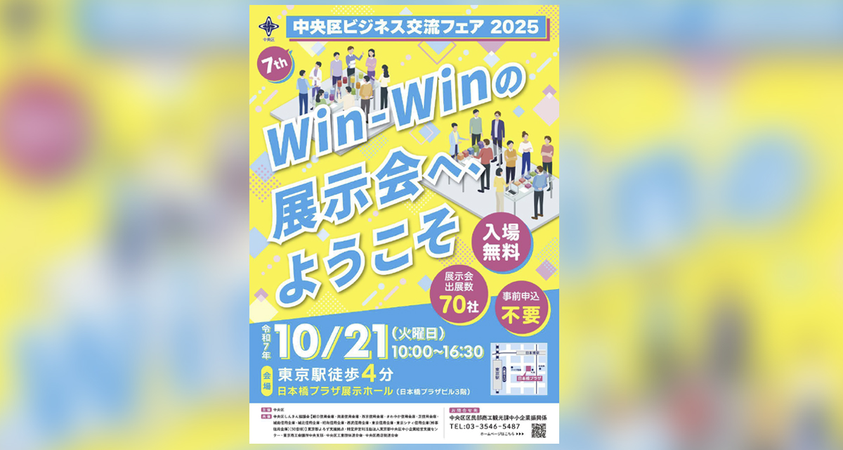 このたび、中央区が主催する「第7回 中央区ビジネス交流フェア2025」に出展いたします。